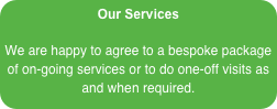 (Please note that this list is not comprehensive and is for guidance only. Please contact us if you require any additional services.)